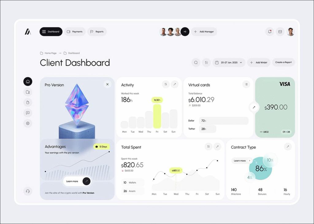 تصميم لوحات تحكم نظيفة، منظمة، وتفاعلية.